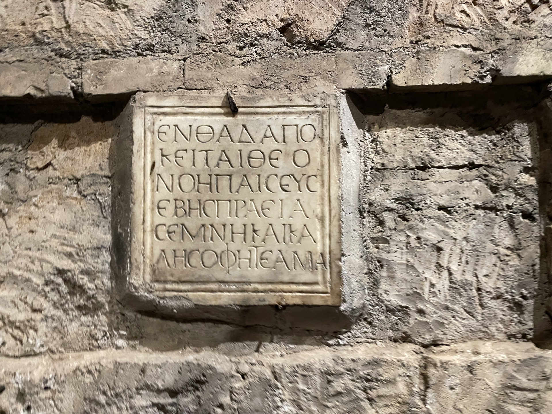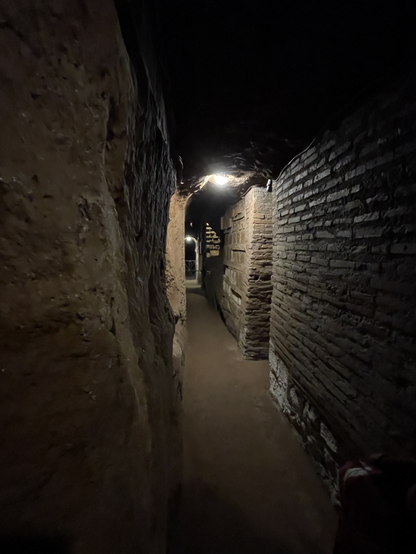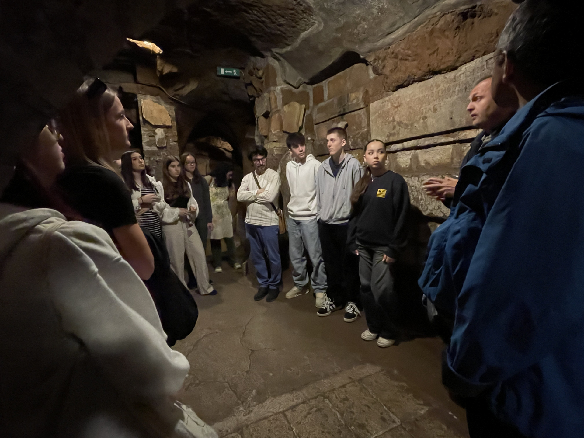 Bestärkt durch diese Messe begeben wir uns zur Führung in die Katakomben. Wir erfahren, dass die Katakomben zu den frühen Zeiten des Christentums genutzt wurden um die Verstorbenen zu begraben und Messen zu feiern. Tief unter dem Boden waren die Christen vor jeglicher Verfolgung sicher. Wir sehen viele Grab-Nischen und Familiengräber in Form kleiner Häuschen.