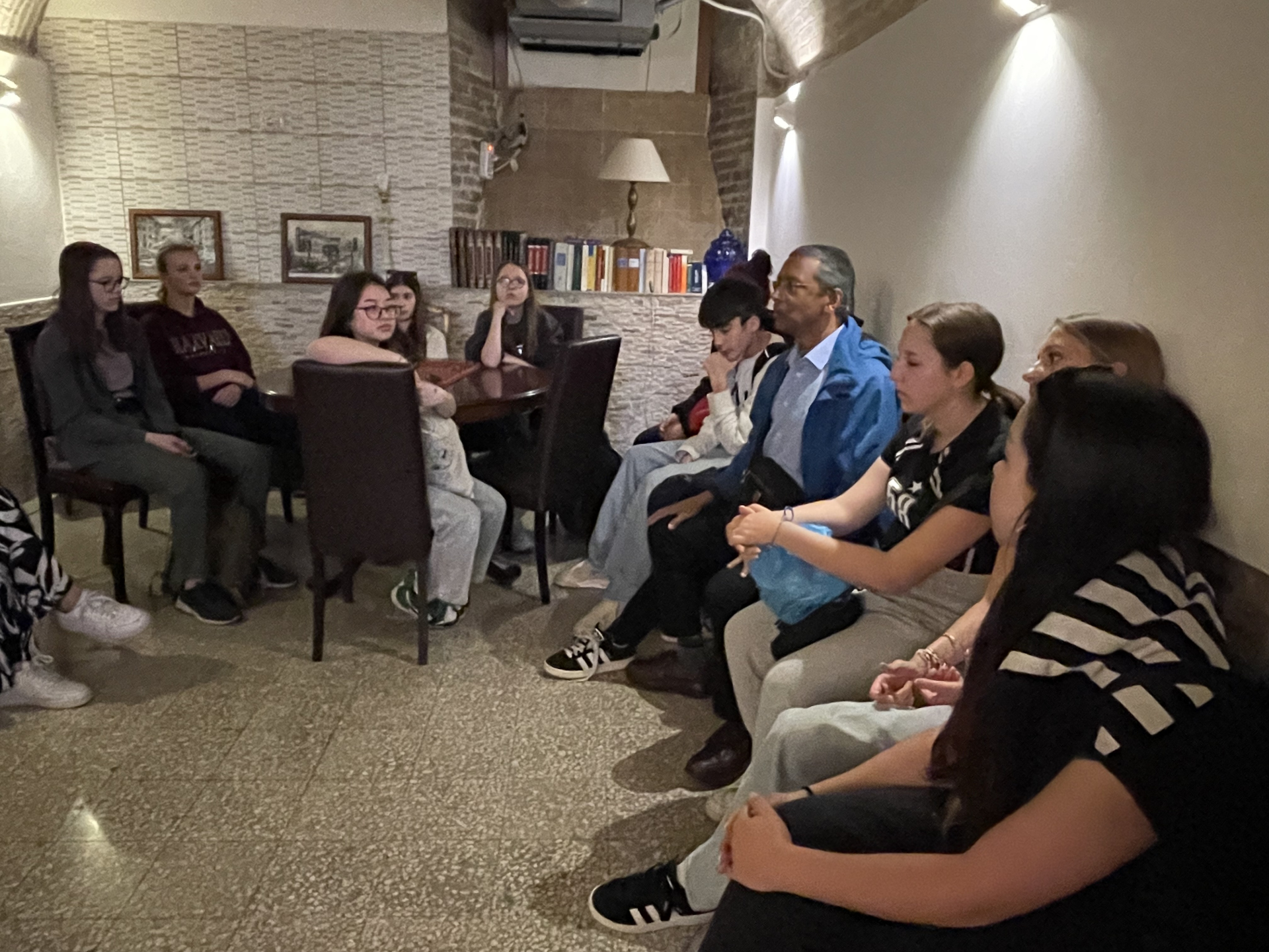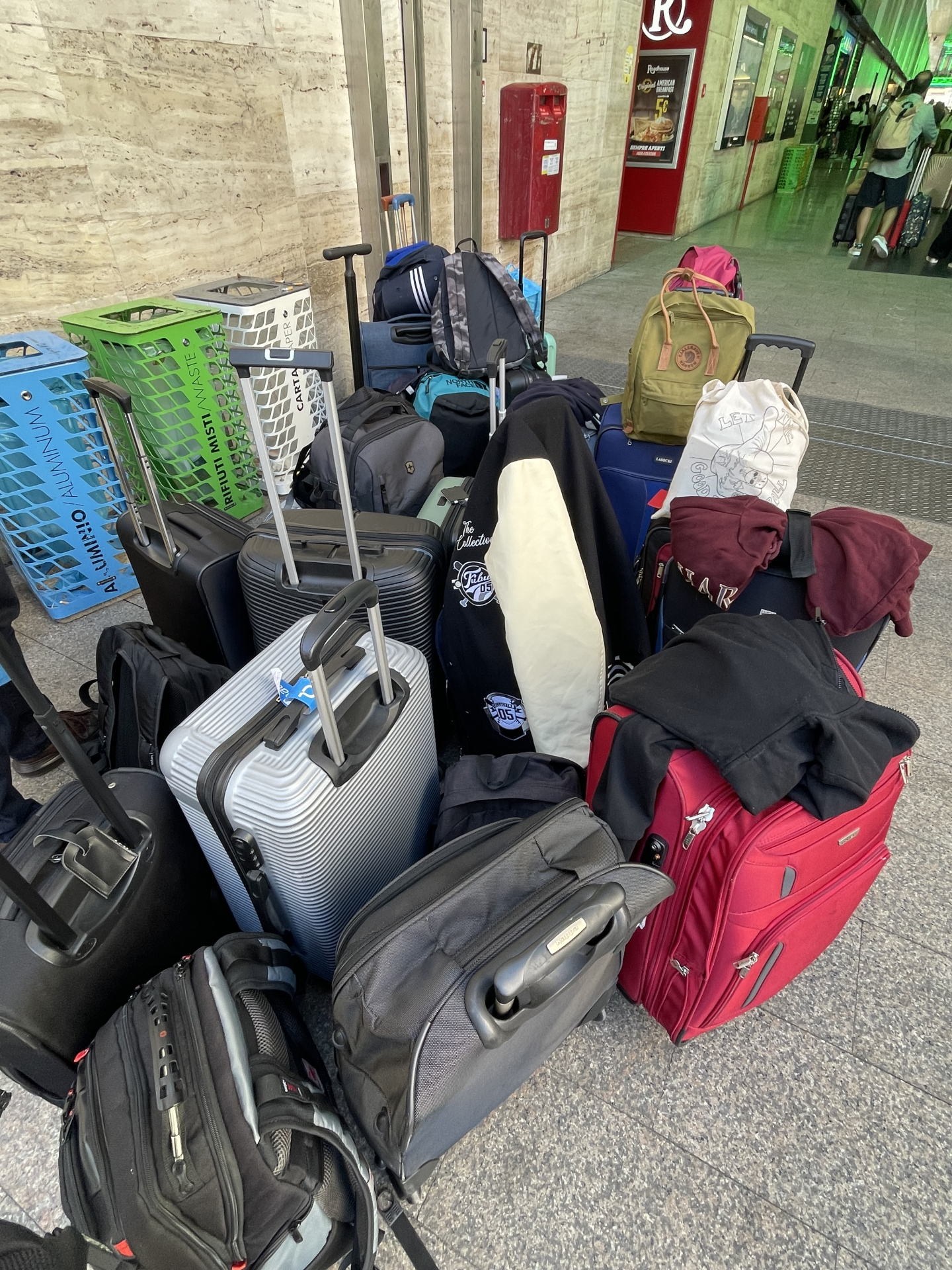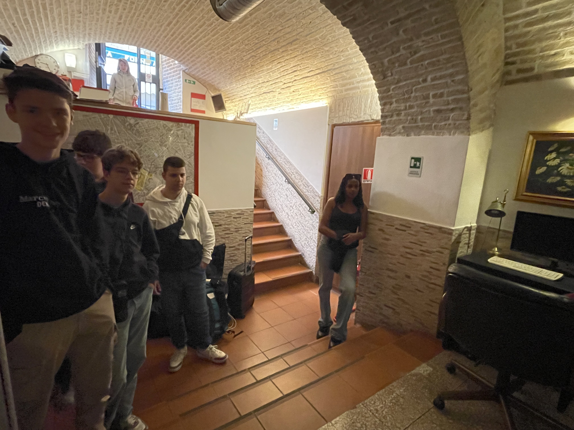 Ein letztes süsses Croissant zum Frühstück, dann gilt es die Koffer zu packen. Um 09.30 Uhr sind die Zimmerschlüssel abgegeben und das Gepäck steht in der Hotel-Lobby bereit. Pfarrer Francis versammelt die ganze Reisegruppe und spricht seinen Dank an den Reiseleiter Placido Tirendi und die Begleiterinnen Antonella Lombardi und Sarah Heeb aus. Herr Tirendi bedankt sich bei Pfarrer Francis. Die Firmkandidaten und -kandidatinnen klatschen Beifall. Als Erinnerung an unsere tolle Reise erhalten alle ein Armband von Pfarrer Francis, mitgebracht vom Vatikan.