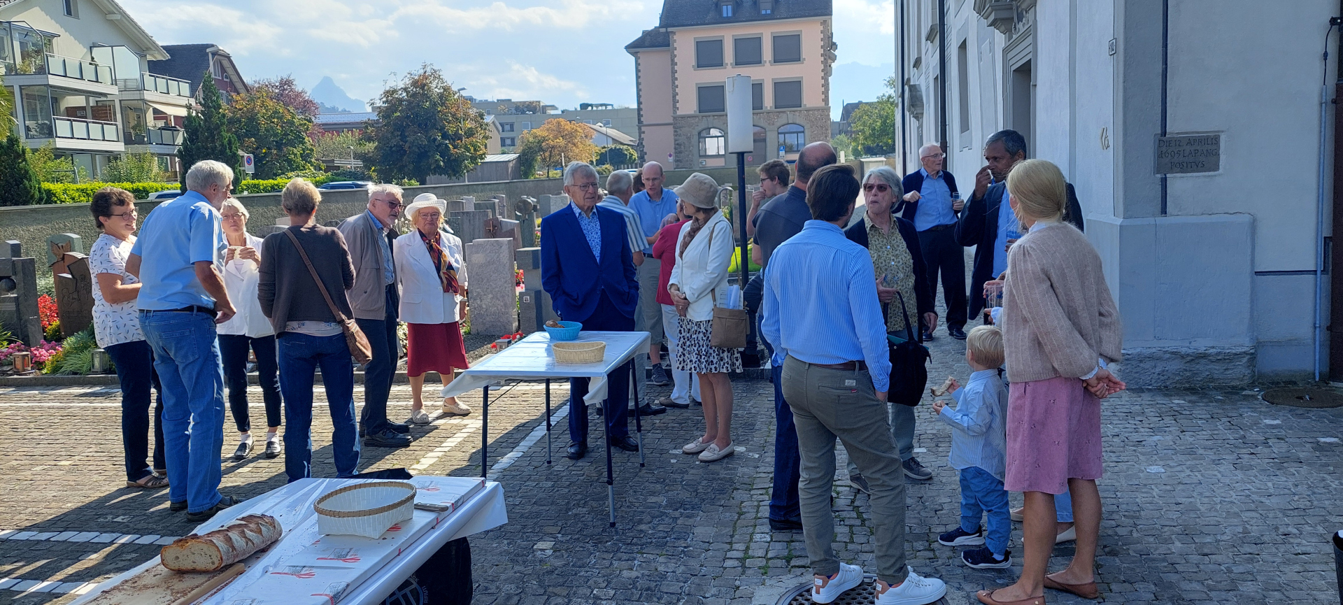 Musikalisch wurde der Gottesdienst vom Kirchenchor umrahmt, welcher die deutsche Messe sang. Nach dem Gottesdienst versammelten sich alle zum traditionellen Mostausschank vor der Kirche. Auch das Brot wurde aufgeschnitten und so verweilten die Besucher und tauschten sich angeregt und von der Sonne beschienen aus.